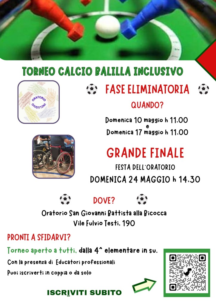 Ti aspettiamo per un torneo di calcio balilla inclusivo, pensato per abbattere barriere e condividere sorrisi. Qui non conta solo segnare, ma giocare fianco a fianco, conoscersi e scoprire la ricchezza nella diversità.